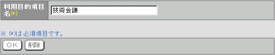 を押すと利用目的項目名が変更され、設定>設備予約>利用目的項目設定画面に表示されます。