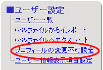 【ユーザー設定】欄の[プロフィールの変更不可設定]リンクを押します。