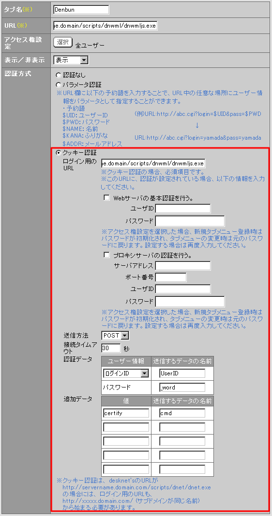 ●例-5:Denbun IMAP版にクッキー認証を使用してアクセスする場合