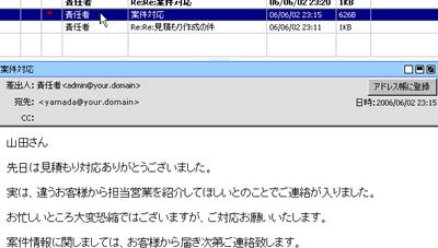 また、メールをダブルクリックすると別ウィンドウにメール参照画面が表示されます。