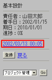 「タスク情報」画面の下部にある進捗報告一覧から”報告日”を押します。