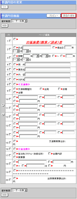 を押すと申請内容画面に戻り、追加した部品が表示されます。