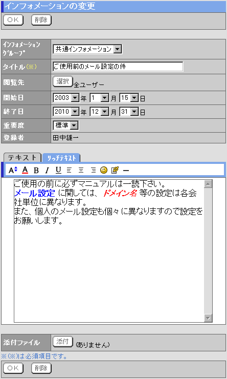 インフォメーションの登録