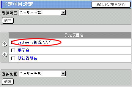 予定項目名設定画面で変更したい”予定項目名”リンクを押してください。