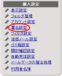 サブウィンドウの【個人設定】欄にある[署名設定]リンクを押します。